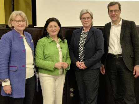 V. l. n. r.: Prof. Heidrun Thaiss, Nezahat Baradari (SPD), MdB, Simone Borchardt (CDU), MdB, Prof. Volker Mall.