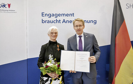 Im Namen des Bundespräsidenten hat Daniel Günther, Ministerpräsident von Schleswig-Holstein, am 10. Oktober 2023 Professorin Dr. Ute Thyen das Verdienstkreuz am Bande des Verdienstordens der Bundesrepublik Deutschland überreicht.